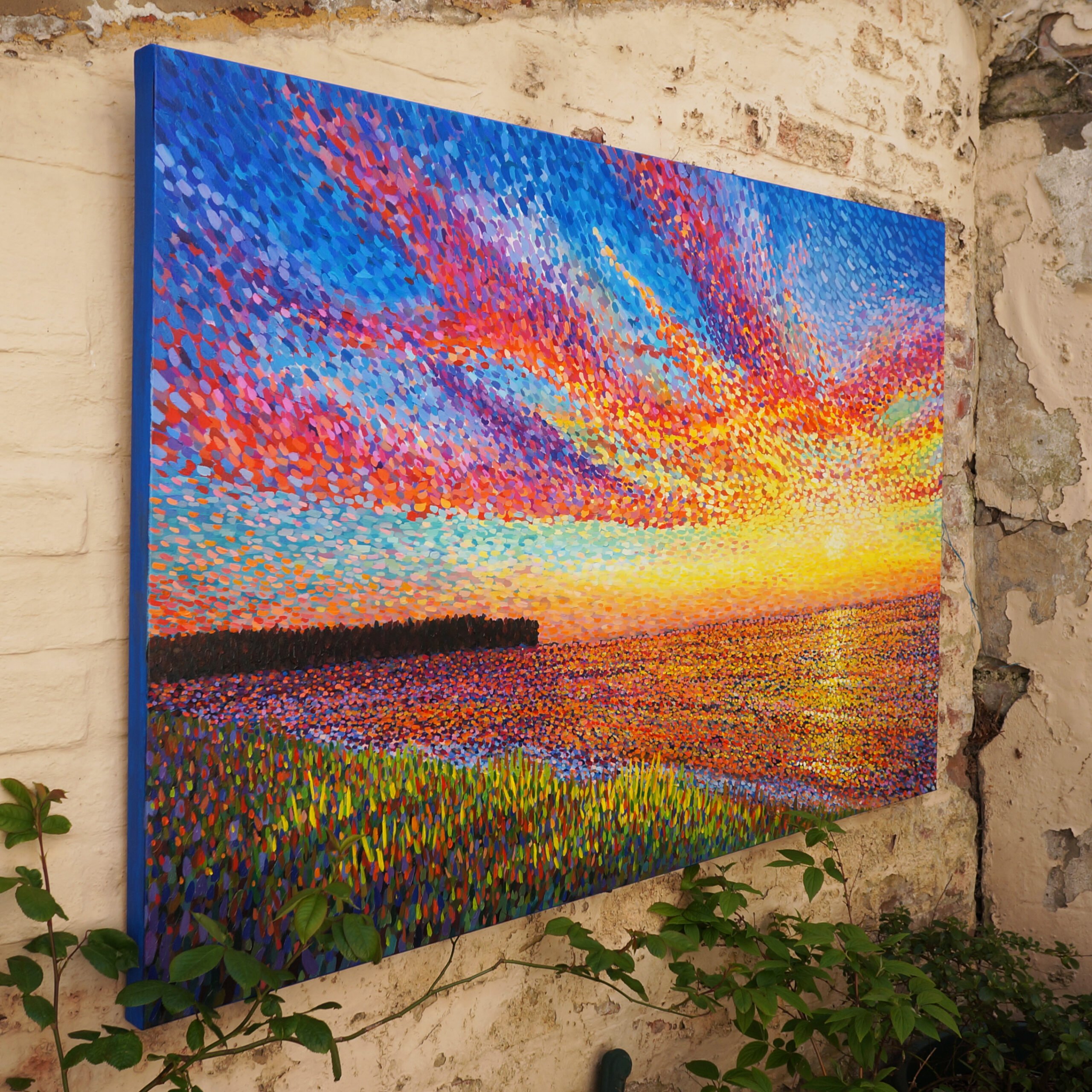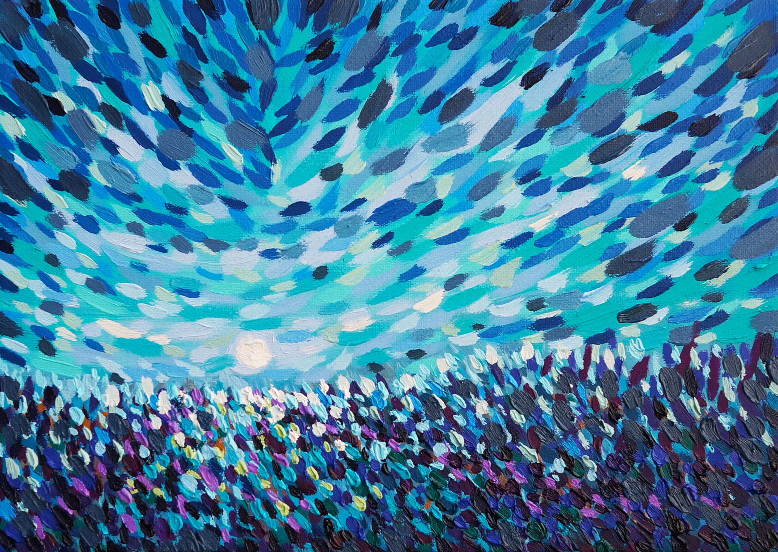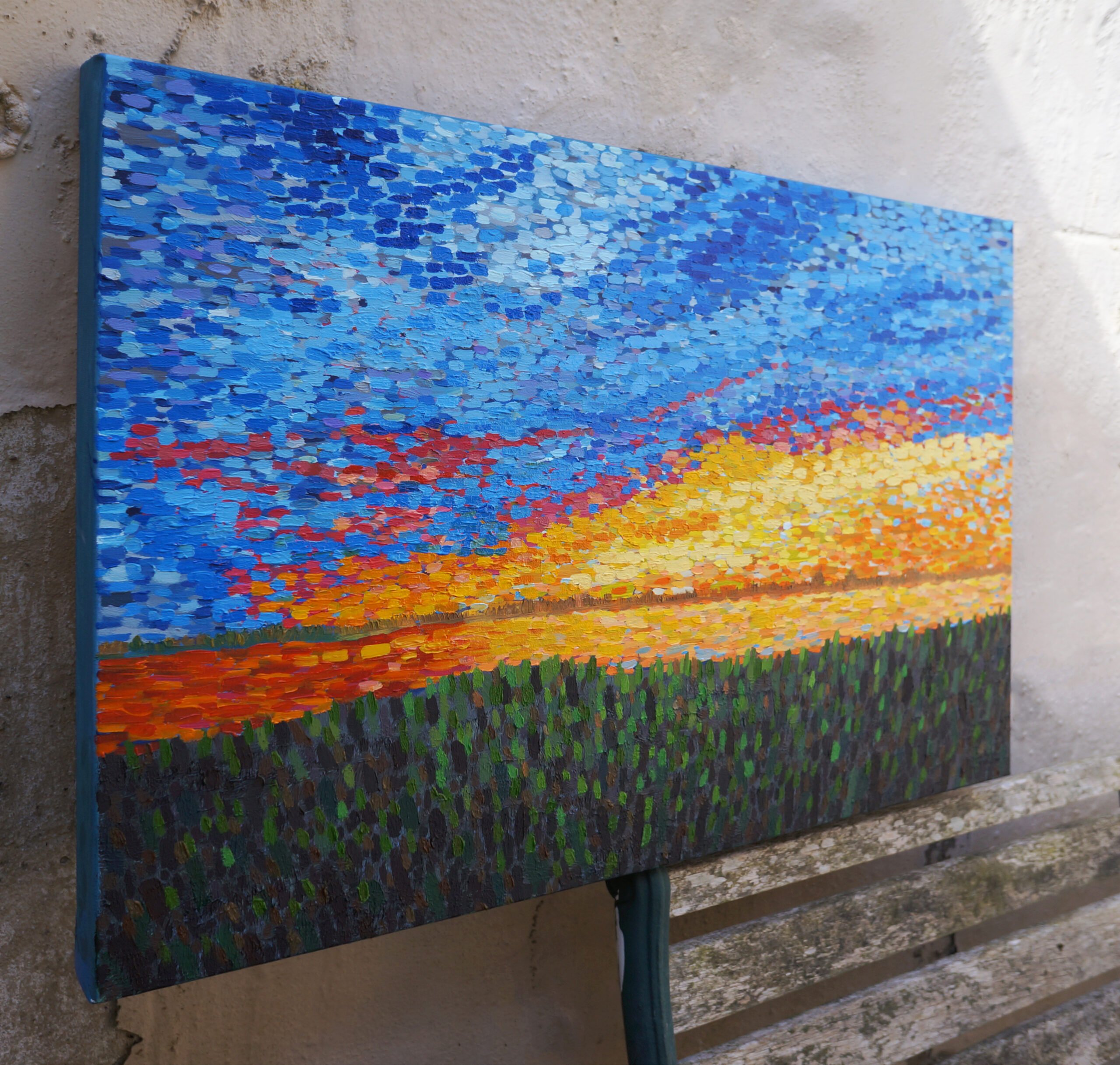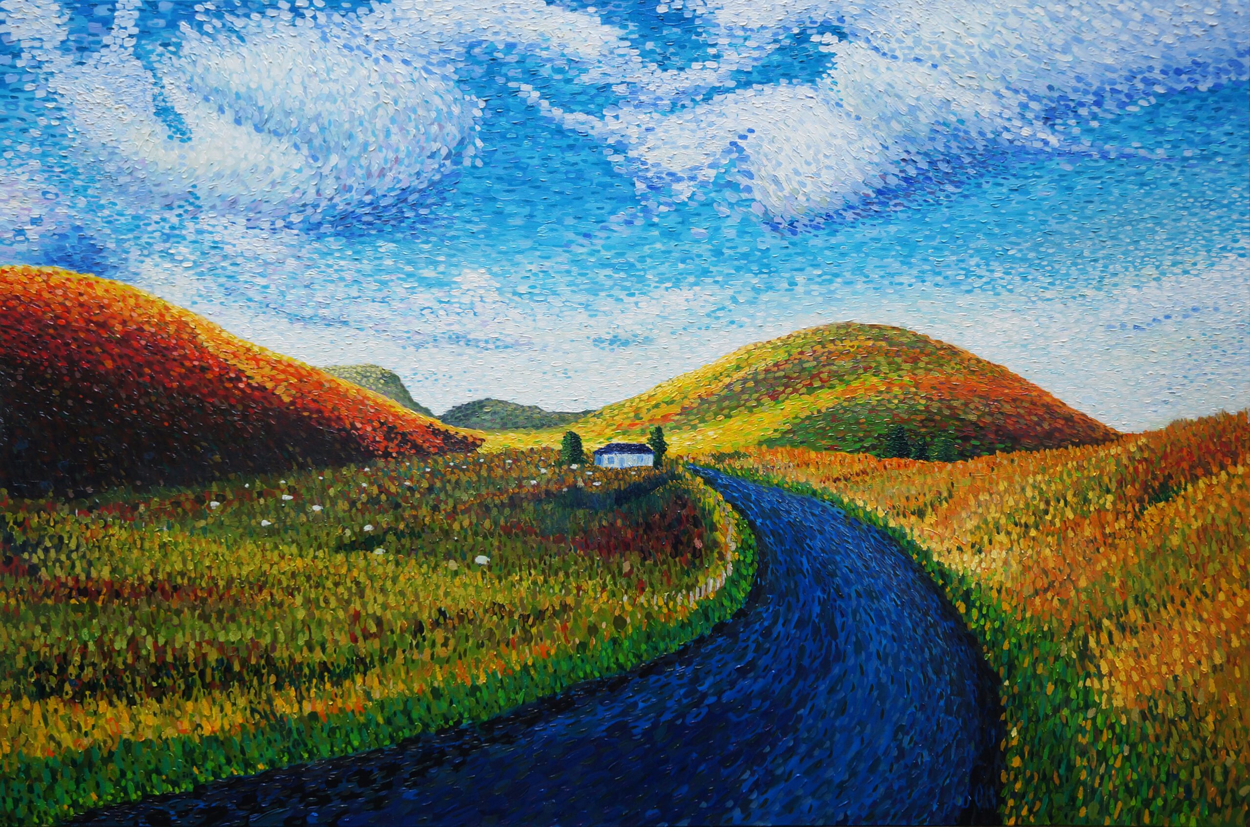 What sets my paintings apart is the combination of traditional pointillist techniques with a modern twist. I layer my brushstrokes to create a unique texture and depth that brings each painting to life. Whether it’s a serene landscape or an abstract piece, each painting is a masterpiece that captures the essence of beauty and nature.