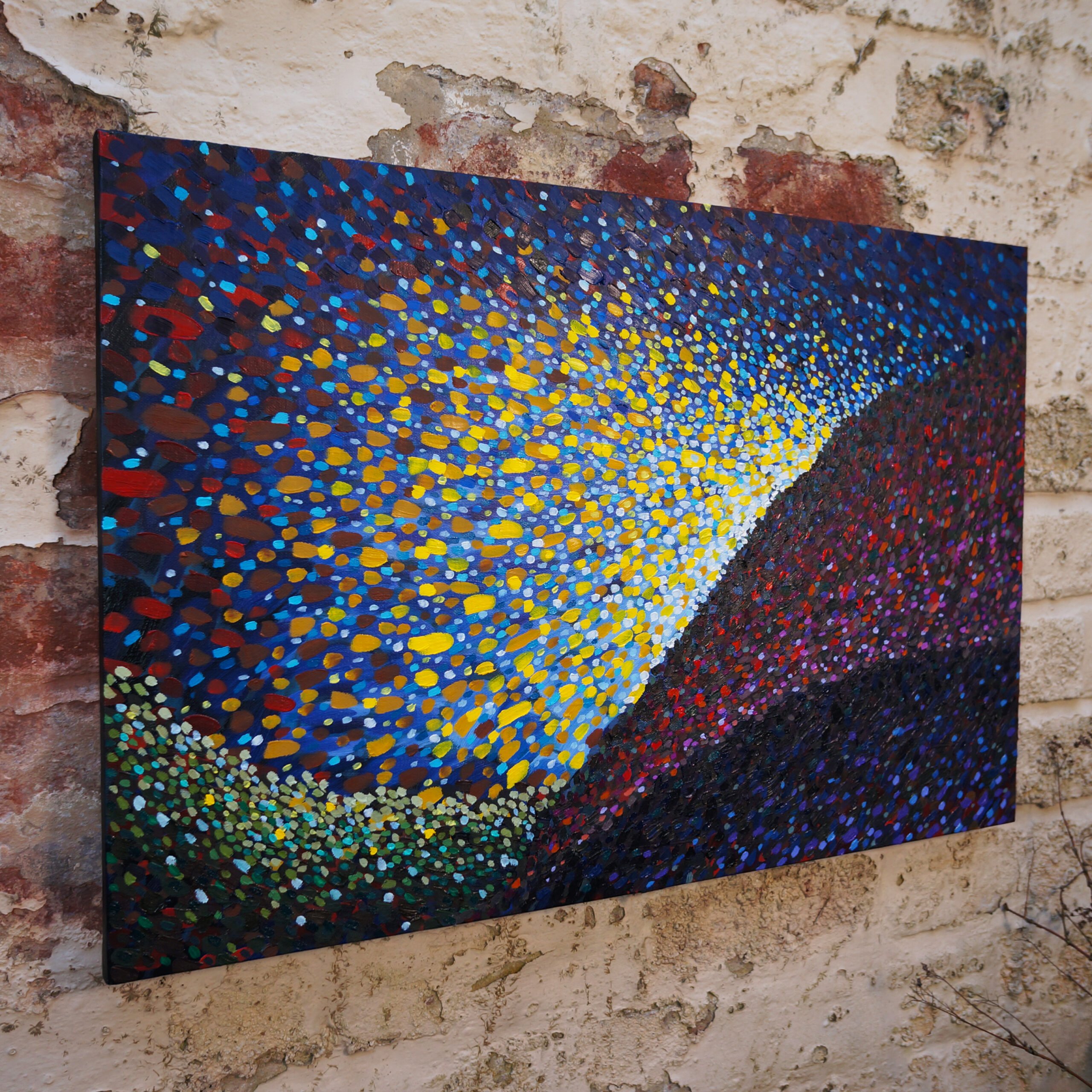 My paintings are a celebration of life, a way to express the beauty that surrounds us, and a representation of my deepest feelings. Inspired by the great post-impressionism era pointillism painters and later abstract artists, I am dedicated to carrying their torch of tradition forward and creating a new modern branch of abstract pointillism.