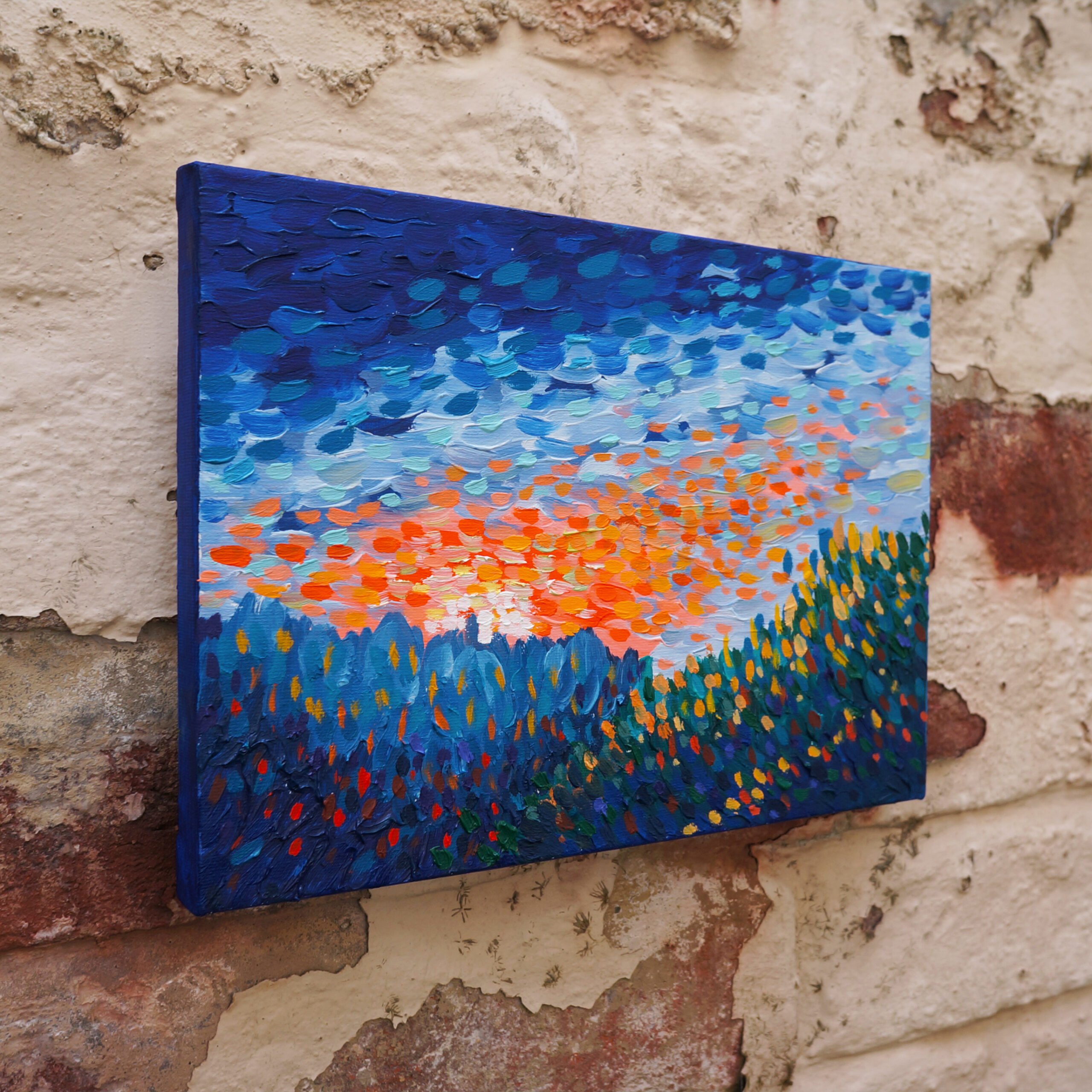 Welcome to my gallery of original impressionistic oil paintings implementing pointillist techniques! Here you’ll find a collection of unique artworks that celebrate the beauty of nature and capture the essence of emotions through captivating use of colors and rhythmic patterns.